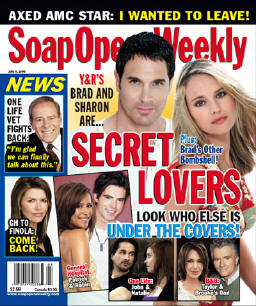 I have found SOD to be much more invested in the actual stories than on what the actors are or are not doing, therefore, they are more direct in their marketing. "Tad Finds Dixie At Last" "The New GH" "Heartbreak! Alexis Learns the Truth!" "Finally! Nora Wakes Up!" "General Hospital: It's War!" "AMC: Bianca's Back!" There is very little that is subversive or tries to convince the reader that something is going on when it's not. I could only find two headlines that I found to be slightly misleading. One was a photo of Carly (GH) with the words "Surprise Death" across it (for John Durant, although you do not know that until you read inside... otherwise, it appears Carly died) and the June 6th issue which has a giant photo of Maurice Benard on it with the words "He's Gone" in huge letters, giving the impression that MB is leaving the show when it is actually talking about Sonny going over the edge. Carolyn Hinsey's opinion column, "It's Only My Opinion," is well written and an enjoyable read. SOD is quite good about giving nods here and there to the past, honoring the veteran soap viewers in their readership. The "Round Up" section that poses the same question to a number of soap stars is always quite interesting. Like the internet itself, SOD does tend to be very ABCentric, which works for me, but would piss me off if I did not watch that network. In April, for instance, the three editions I have all run an ABC story as its "big photo" story with smaller photos surrounding it for the stories run by other networks (or in some cases, smaller photos surrounding it touting other ABC stories). It makes me wonder what was on the cover of the April 11th issue which I do not have. As I go through the magazines as they come out, I highlight in yellow comments that might be appropriate for our "You Were Saying?" column or tidbits Sage might want to include in his gossip column. To its credit, SOD has a good bit of yellow in it when I am finished. It has good info and carries with it a good sense of integrity, focusing more on the shows and characters than on the actors' proposed comings and goings. Its attention, however, to each individual soap means that a good bit of its content is lost on me and totally irrelevant to my interests. ![]() Soap Opera Weekly: SOW suffers from the same "cover all the soaps" malady as SOD as far as holding my interest. The difference is that it does so with considerably less class. Though that might sound harsh, I have to say that I have a special place in my heart for the magazines that dismiss (or can't afford) the gloss and glam image and remain true to their pulpy roots. SOW still has the tabloidy, rough look that practically still has pieces of tree left in the paper. I love it! To me, such a presentation conjures up images of underground newspapers and rebel publications that have not yet sold out to The Man. That being the case, I should love this periodical. Sadly, there is a reason why I only have two issues. That was how long I gave the magazine before I dismissed it. The content lacks imagination and is slow with news and gossip updates. By the time info hits their pages, it has already been all over the internet and spent a week or two published in the other two magazines. It has half as many pages as the other two mags, which should be compensated by the fact that it is more than twice as big. Still, the info seems lacking and scattered. If I happened to be in a doctor's office on a long wait and had to choose between several mainstream magazines (People, Time, Car and Driver, etc) and Soap Opera Weekly, I would definitely grab the SOW, but given my preference among the soap opera magazines themselves, SOW tends to leave me feeling as though something as missing... sort of like eating oatmeal without sugar. When push came to shove, which one got my subscription bucks? ABC Soaps In Depth... but dammit, I wonder what axed AMC star the upcoming issue of Soap Opera Weekly is talking about... >:<