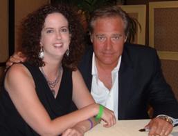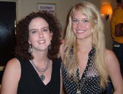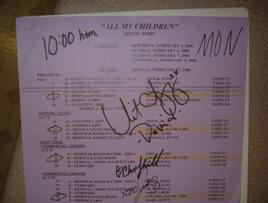 I made it to my hotel in one piece and stayed up another couple of hours to chat with friends because I am INSANE. We woke up late the next morning and managed to make it to the luncheon just in time for lunch to be served. During lunch, they held the raffles, and a friend of mine won shirts worn by Zach and Kendall. Naturally I pole-vaulted several tables so that I could paw at it…er…I mean get a closer look. The Zach shirt was Armani and the softest material on an article of men’s clothing I have ever felt. And boy did I take my time feeling it. The actors arrived and since I was sitting towards the back, they were barely recognizable blobs. During the Q&A three of the actors - Terri Ivens, Alec Musser and Jeff Branson – went around the room with microphones to take questions from the audience. At one point Alec was standing next to me waiting his turn, and I told him that I liked his Myspace page. He said his girlfriend put it together, and I said she did an excellent job. I mentioned meeting him at the Prohibition event, and he encouraged me to join his fan club and send in pics. I didn’t take many notes for this Q&A. I was too distracted. The funniest thing I remember was when someone asked if Erin and Josh were going to hook up. Colin Egglesfield went over to Connie Fletcher, and started checking her out. From the crowd, Jeff Branson joked that he would like to see more of that on the show. I was thinking the same thing – they were being very naughty, it was a total crackup. The camera work was brought up yet again, and same answers given. Same reaction from the crowd. I was a bit startled when they were announcing where the celebrities were going to be sitting for their autograph session, and when they announced Jeff Branson and Leven Rambin were to sit together there was a huge cheer – the biggest cheer of the day. I had no idea Jonathan and Lily were so popular. They made a change later on and the two ended up sitting with other people. I made a bee-line for Cady McClain’s table. I told her my online nickname and said that I posted to her blog a lot. I gave her a Zen wrist band as I had joked in my last comment to her blog that I would do. Then I had her sign the CD cover that I custom-made when I downloaded her BlueGlitterFish songs. She really liked it, so I presented her with a poster that I made of pictures that she shared on her blog. The graphic is on my website if you want to see it.