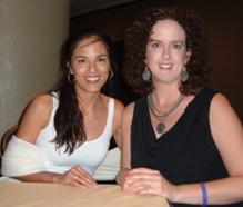 We didn’t get the opportunity to do a Q&A because Alicia and Cameron had way too much fun with the raffle prizes. They have a very good rapport and love to chat and joke around. During the autograph session I pretended to be wounded to the core that the pictures they were signing were of the two of them together. I even pointed out that the dress she was wearing in the picture was from the scene where she and Zach were celebrating at the casino when the earthquake happened. I gave Alicia a purple wrist band that says “Always. Only Zen.” I told her it matched her shirt. She put it on, winking at me, and told Cameron that it wasn’t for him to see. While waiting to chat with Cameron, he was telling some of us that there will be some weird surprises coming up in regards to Spike, and it isn’t what we would think. He said that Terry is not Emma’s biological father and there was a surprise with her, too. We told him the speculation about Emma being Kate, and he said he doesn’t think that is the surprise. I asked him the two questions. What is his motivation for everything? His kids. He said it with such a tender smile. Awww! I gave Alicia a postcard printed with the banner from the Zach and Kendall message board. I told her that I was asked to try and get both hers and Thorsten’s signature on it. Since I knew Thorsten wouldn’t be there, I put my address and a stamp on it and asked her if she could get him to sign it and then drop it in the mail. *crossing fingers* I asked her the two questions. What does she do when she comes home after filming a crazy scene on the show – where there might be lots of crying or yelling or whatever? She said she’s usually still in a state, and deals with it by laughing, drinking wine, eating junk food and calling her mom. Alicia said some other very sweet things to me and then it was time for the photo op. Okay, I admit I was a little juvenile. Can I blame it on the lack of sleep and that rummy concoction from Chrishell’s event? I really do like Cameron. Honest!