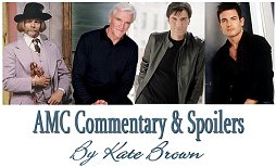 What else. What else. “And you two wouldn't know anything at all about that, would you? The only difference here, of course, is that Annie's on the outside. She's not part of your club, you know. So, when she messes up, it's completely and totally unforgivable.” I liked Ryan during that scene. He summed up the situation perfectly. Not only that, he described the situation using almost the exact words Annie used a few weeks ago. For those few moments, Ryan behaved like an adult. “Smudge the place.” “Last I heard he was in Indonesia sipping Mai Tais.” Just as I thought, Jake and Amanda made snarky comments about David. Of course, everyone makes snarky remarks about the evil but sexy David Hayward-that is until they need him. Oh, by the way Amanda, David went to Indonesia to provide free medical care. I remember Tad saying something akin to, “I guess he finally decided to do something for other people for a change.” Of course that is not to say David isn’t sipping Mai Tais when he is not on call. Taylor is more interesting now that she has mysterious issues. I still do not see any chemistry between Taylor and Jake. Of course, my thinking Jake is an ass might have something to do with that assessment. “This your lucky day. You get to stare at me.” Here’s a clue Kendall, when your husband says that it means he wants you to think staring at him all day is your heart’s desire. “Oh, it’s a lizard. He’s so cute.” This goes a long way to explaining Amanda’s choices when it comes to men. “I will not ignore my friends. I will ignore you, the kids, my brother and my company but I will not ignore my friends.” Well, that is what I heard Kendall say. In my head. The question of the week- does any soap hospital lock its pharmacy? Frankie didn’t even need a key to access PVH’s hard stuff. “When I thought Zach died, I died, too. And if you think writing a best seller while dead is easy, you just think again, little missy. What do you mean, that isn’t what Kendall said “but then who would help you poison your perfume?” My affection for Petey grows with each passing day. He’s smart, he’s articulate, and he looks cute in goggles. “Why is Annie evil and I am good?” Because dear Greenlee, making Annie the wife from hell is the quickest way to reunite you with Ryan. Not the most interesting way, but the quickest. “I’m trying really hard not to be that guy anymore.” Not to be picky, Ryan, but I believe the correct wording would be, “I’m trying really hard not to be THAT MONSTER that I was trying not to be when I shoved my pregnant wife into the dresser.”Of course I understand why you didn’t mention the Fight Club, because the first rule of the Fight Club is to not talk about the Fight Club. “I thought Lancelot was going to look after you and the Super Hero Fetus.” Dead Richie sure is a lot more fun than Dead Dixie. For one thing, Dead Richie has a snarkin’ sense of humor. “How you feelin’ there, Erica? Woke up in your own worst nightmare?” It’s good to see the writers acknowledge Erica and Greenlee’s long history of animosity. “I wish to heaven we still had the Dobermans.” “my dog Harold.” I miss those dog days of AMC. Harold is always on my list of characters who should be made un-dead. True, Billy Clyde Tuggle is on the top of the list, but Harold is right behind. For the cat lovers out there, let’s pause for a moment to remember Daisy’s cat Bonkers. Aidan punched Ryan. It felt good but it made me sad. Aidan did the punching because deep down he knows that Ryan’s declaration of love puts his marriage on shaky ground. Poor Spotted Dick. “All night long that’s all I could think about- how much more attractive Jack is to me when he gazes at someone else. After thinking about that, I thought about how to win Jackson back so I can stop wanting him.” Well, that is what Erica said. In my head. “Watch it, she’s my mother.” I am looking forward to the day when Colby and Petey get married. Adam and Opal and Palmer as in-laws would make for a fun Thanksgiving. “She’s nice. She’s spontaneuous. A free spirit. She only cares about what feels right and good. That’s why I am sure Amanda won’t mind when I dump her for you.” Well, that is what Jake meant, isn’t it? “Opal.” “Lucifer.” See above: in-laws. “Would you just stop with all the drama. Pine Valley has room for only one drama queen and that’s me.” What do you mean, that isn’t what Kendall said. Jesse cooks! Jesse does the dishes! Maybe he could give Tad lessons. “Did some major sucking up. It made me sick.” Annie and Adam. Perfect together. “(You are) incandescent in your rage.” “Incandescent” is a terrific word. Perhaps it reminded Erica what a wonderful cunning linguist Adam can be.
