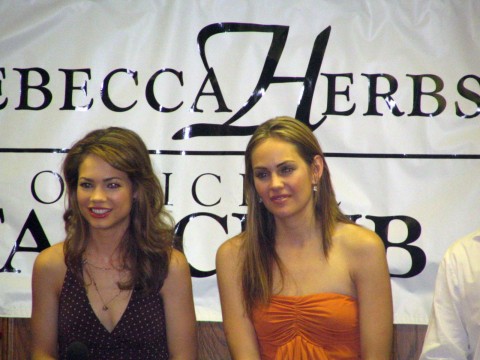 Ignacio Serricchio stopped by the event and I walked him to the front. Poor guy, he probably thought I was stalking him or mothering him because we kept bumping into each other and I kept walking with him places. Next it was on to the Rebecca Herbst Soiree. I’d never been to one of her events so I was excited. We walked in to be greeted by Rebecca’s mother. When I say “we” I mean Debbie Morris and I as I became her sidekick for a short while. It’s kinda fun to be treated like visiting royalty even though it was aimed at Debbie Morris and I just happened to be the one standing beside her. Rebecca Herbst, Natalia Livingston and Michael Saucedo were sitting center stage answering questions from the audience. I tuned into their conversation just in time to hear Rebecca laughing that no one mentioned to her that Lucky was going to cheat on her. She happened to glance at a monitor in the studio was shocked to see Lucky kissing Maxie.