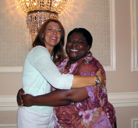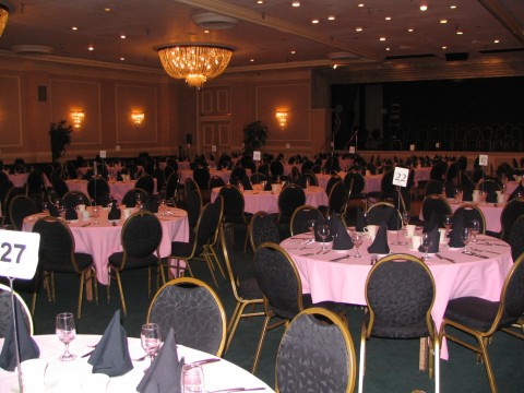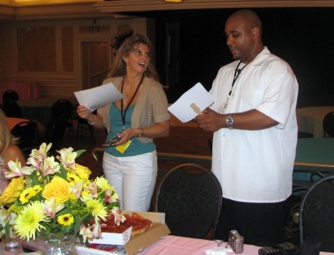 August 1, 2006 Saturday, July 22, 2006 The morning began inauspiciously at Twains our traditional early Saturday morning breakfast spot. This morning we were greeted by our waitress (the same waitress we’ve had every year who I want to say is older than dirt but that wouldn’t be nice so I’ll describe her as a comical institution at Twains) with the information that the grill needed a new part which hadn’t come in yet so instead of hash browns they were offering tomatoes or cottage cheese. Not toast, mind you, but tomatoes instead of hash browns because everyone knows that hash browns and tomatoes or cottage cheese balance out on the carb scale somewhere in the universe. Don’t look for the logic, there isn’t any. I ordered a spinach Florentine omelet which wasn’t a problem but Dianna (oh, big adventurer) ordered a grilled ham and cheese sandwich. But the grill didn’t work so Dianna asked if they could cook the ham on whatever the eggs were being cooked on. The waitress went to check with the cook. A couple minutes later she returned to check Dianna’s order and ask how she wanted that ham and cheese omelet? Dianna clarified that she wanted a grilled ham and cheese sandwich. But the grill didn’t work. Dianna asked again if the ham could be cooked on the same surface as the eggs and the bread toasted in the toaster. Our waitress went off to confer with the cook. Putting ham on a hot surface next to eggs was apparently a big decision. A couple minutes later she returned to ask about another order and confirm with Dianna how she wanted that ham and cheese omelet? You know how you do that thing when you need to convey a message to your friend but it would be rude to say it in front of the person you want to talk about? Dianna and I looked at each other and my face began to hurt from trying not to laugh out loud. Valiantly, Dianna asked one more time if they could cook the ham next to the eggs and toast the dam bread in the toaster because she already knew the grill wasn’t working. Please? Having finally absorbed that Dianna wanted a sandwich and not an omelet, our intrepid waitress returned to our table a couple minutes later to confirm Dianna’s order one last time. “And you want a grilled ham and cheese sandwich,” she stated. Dianna’s revenge was small but funny when she kindly informed the waitress that the grill was broken. She didn’t get it. Amazingly, her sandwich eventually arrived and I don’t even remember how it looked because by then I was embroiled in a battle with my taste buds that were telling me that I was eating the worst omelet of my life and possibly the mushrooms were bad. My head insisted that we’d always had good food here before so surely the omelet was OK. My taste buds won and sadly, I don’t think I will ever look at Twains in the same way. Lucky for me, someone else didn’t want their eggs so I scarfed them down and survived the meal. Working the event has its benefits and one of them is walking past the line of people waiting to attend the luncheon into the area where it will take place to either help or stand around looking for a way to help.